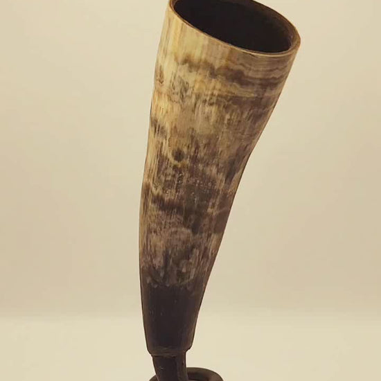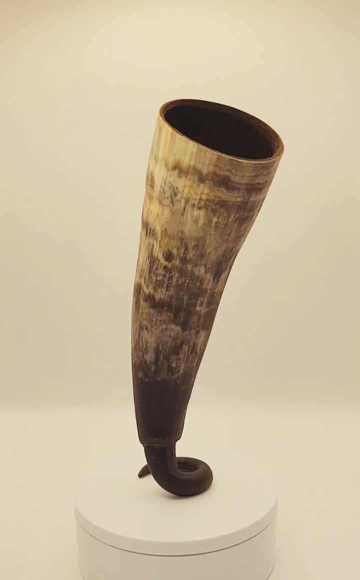This is a special piece in the Bamoun craft and is used by notables and princes. It is called Moukup Ndou Nahh. Literally describing the item which is a cup done from the horn of a cow.