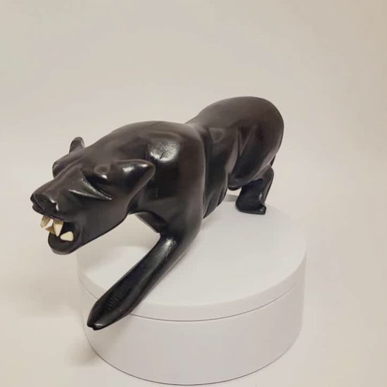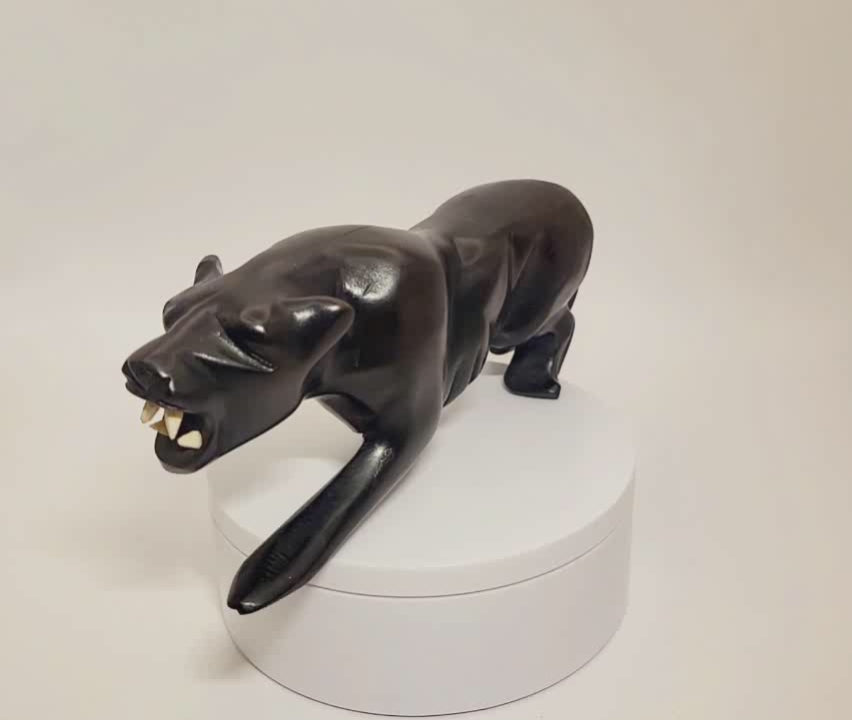 This is a small handmade sculpture ususally made by Bamoun's for the royal family. They do these arts to show case what they can do with Ebony wood. This small status signifies strength and power.