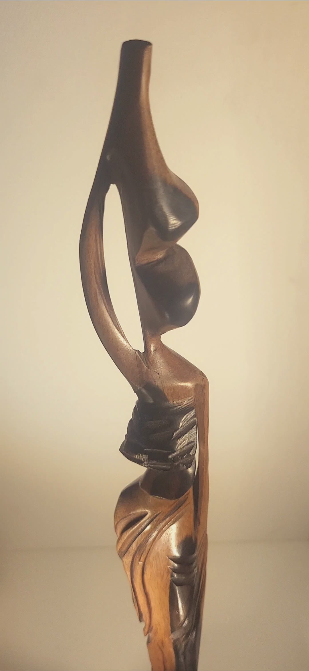 Water is life and this representation of a staple in the African culture in which the mother carries is a clay pot filled with drinking water from the stream.